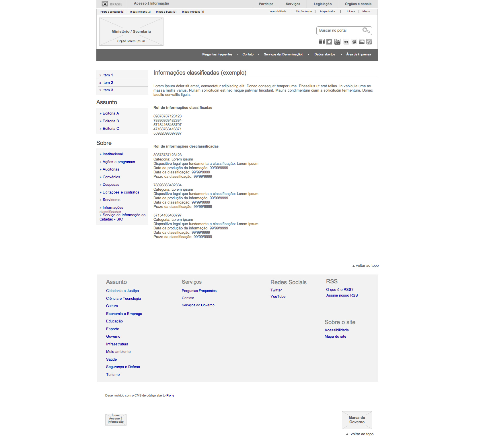 Acesse o wireframe com o exemplo de uma página de Informações classificadas